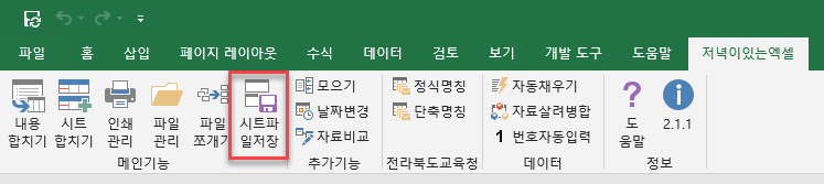 [저녁이있는엑셀]의 [시트파일저장] 기능은